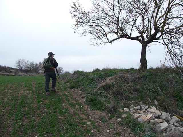 Mi amigo y compañero de caza Pedro Pizarro tras las perdices |